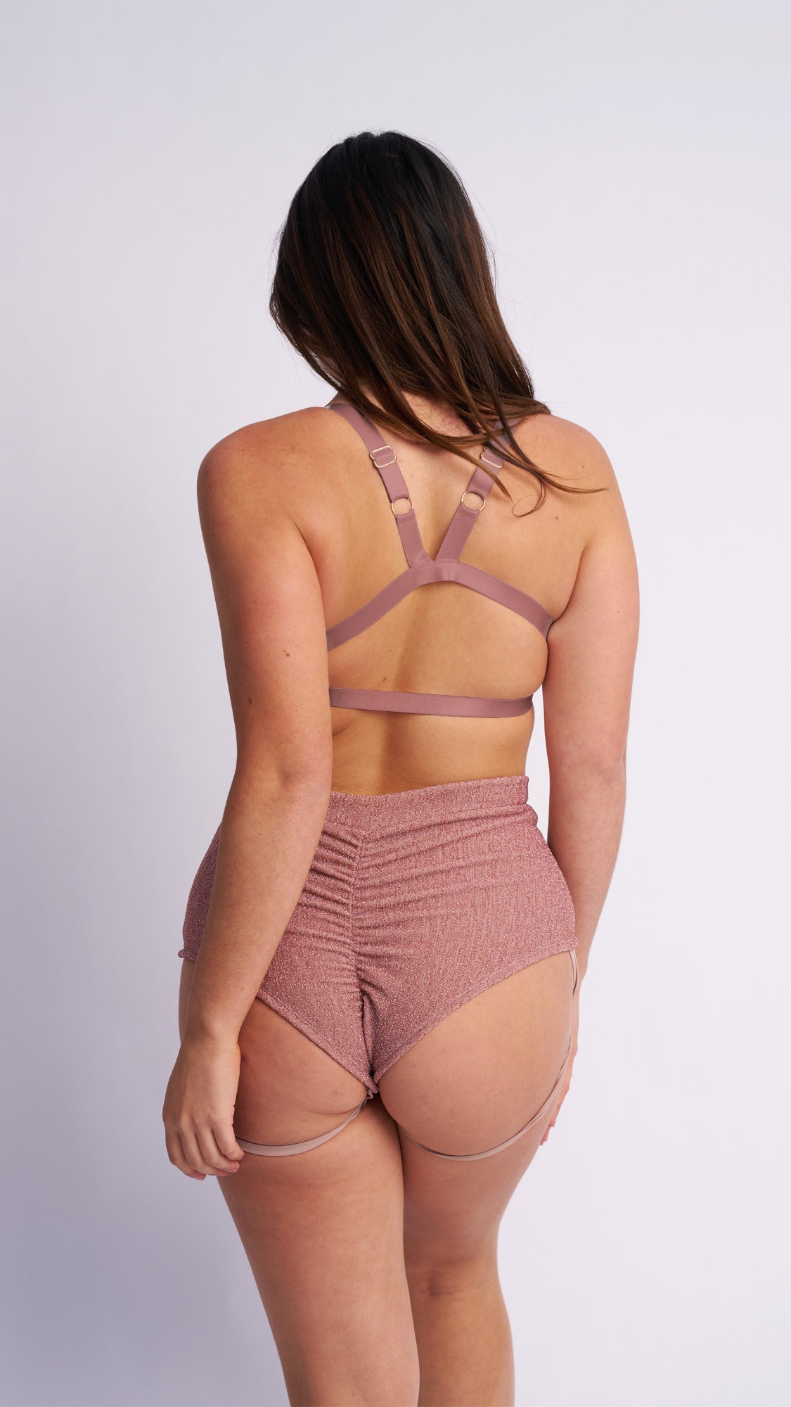 The High Waist Garter Short in Rose Gold Shimmer is your next go to shorts if you're after an elevated pole basic. Think sexy but simple, these shorts are the perfect bit of shine you need. Available in Blue Rose Gold Shimmer too.