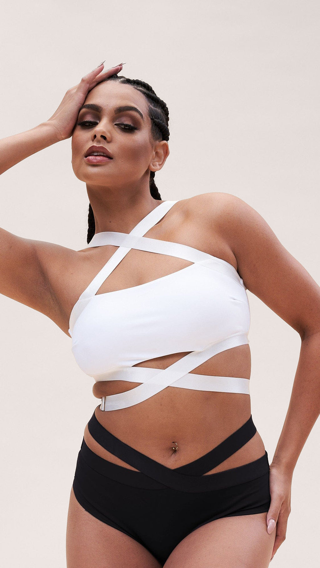 Renee Top - Cross Over Halter Neck Crop Bra Recycled White