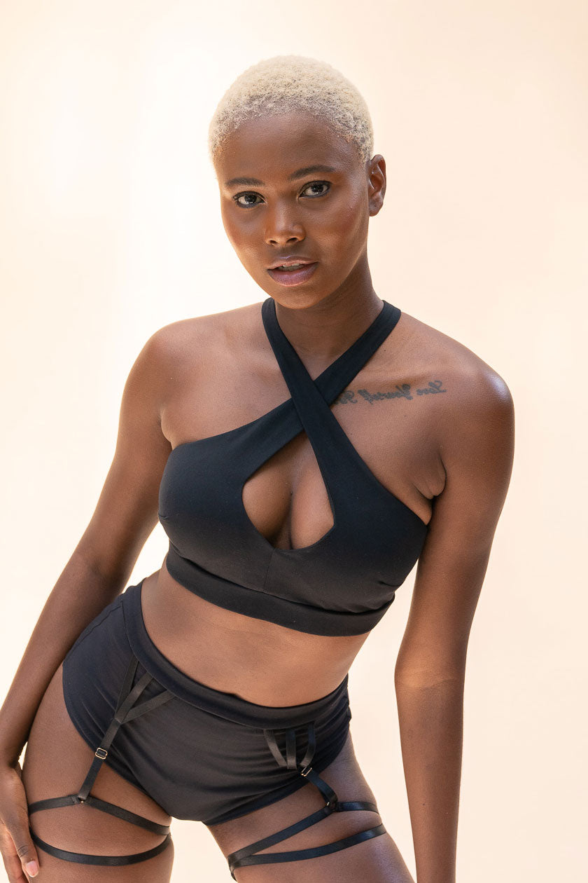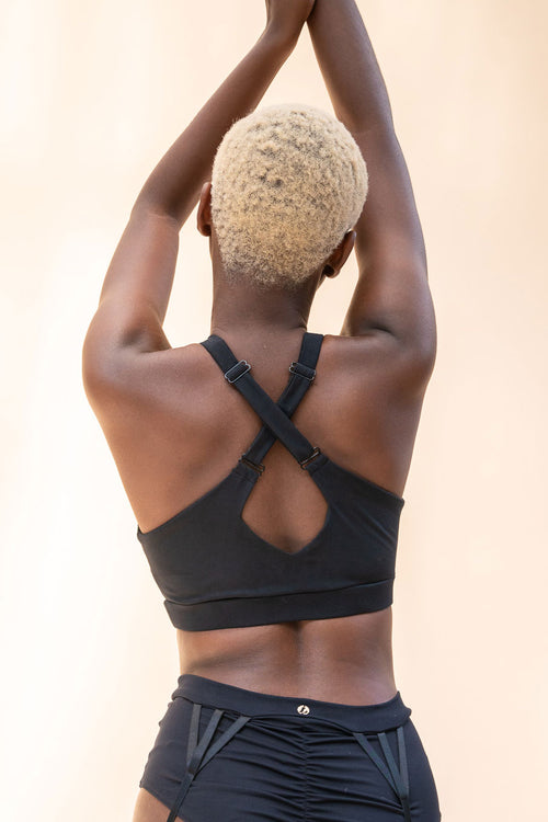 Fallon Top - Cross Over High Support Top Recycled Black