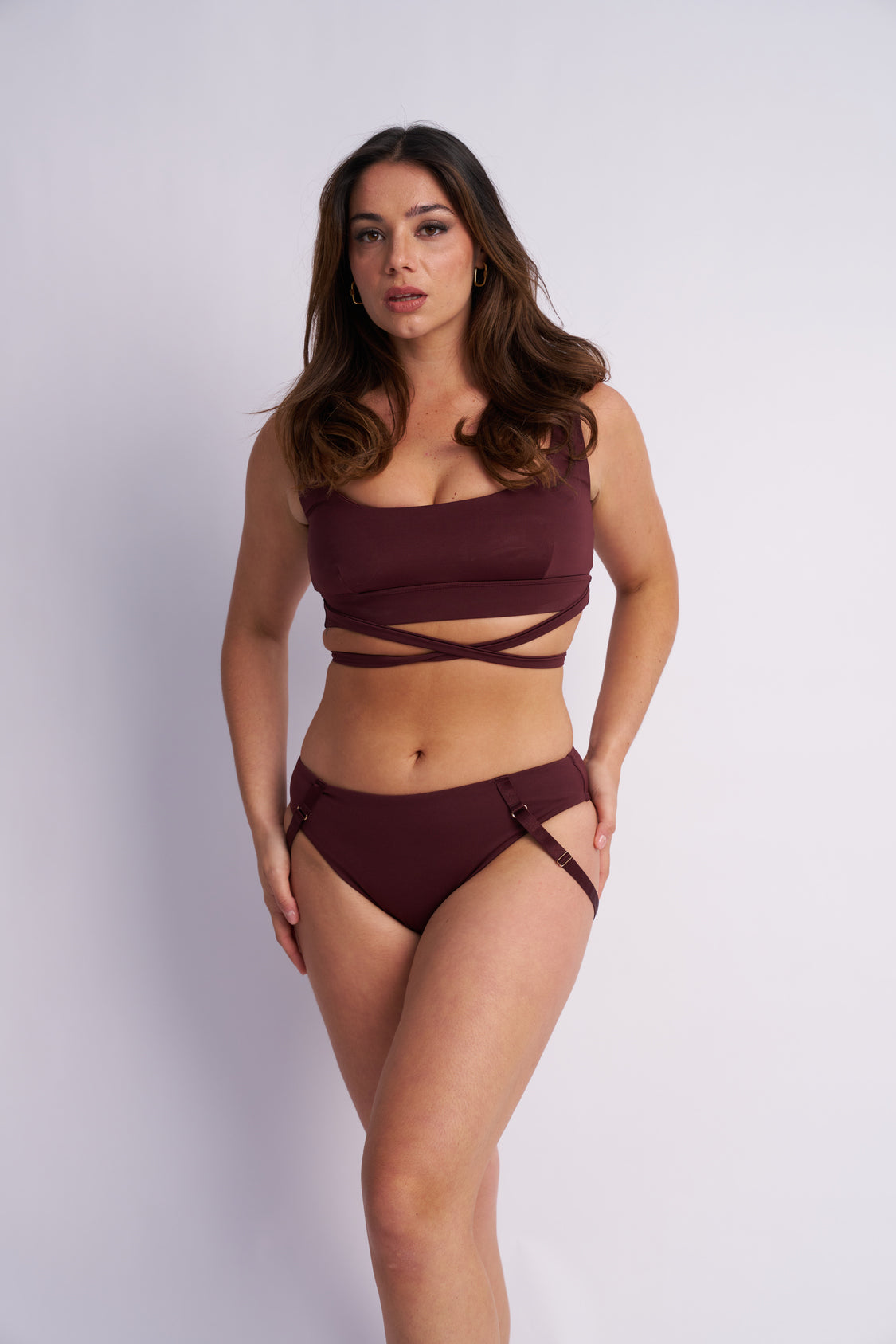 The classic cut of the Kehlani is super flattering with a scoop neckline, whilst the clean structure is completed with the criss-crossing straps under the bust.